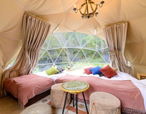 全11室中5室が露天風呂温泉付き!別府の「美白の湯」や有名シェフ監修のBBQを楽しめる、ペットも泊まれるグランピング