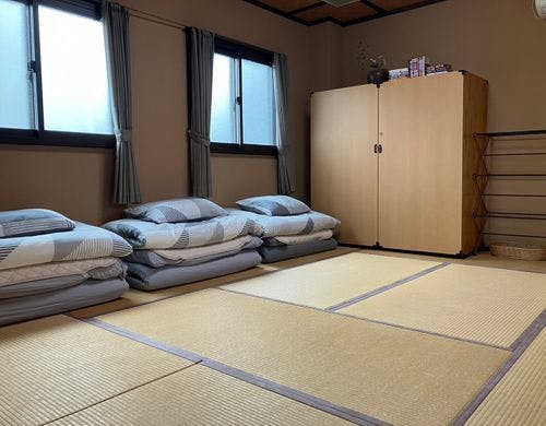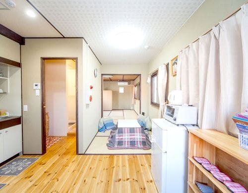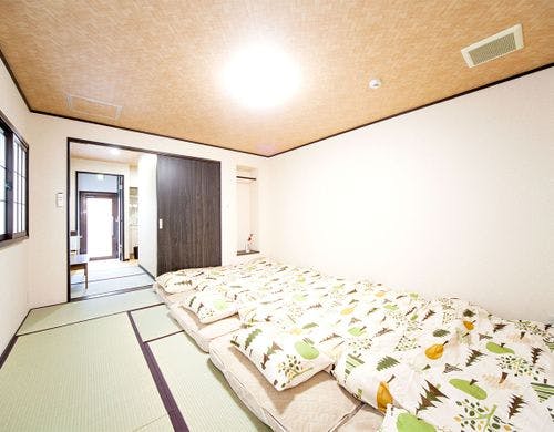 「KEVIN'S PLACE」は、美しい京都を満喫できるゲストハウスです。1階と2階に1部屋ずつ客室を備え、それぞれベッドルームとダイニングキッチンを完備。各部屋は布団を使用して最大5名様まで宿泊可能です。JR京都駅より徒歩13分の立地に位置しており、バスや地下鉄へのアクセスも便利です。