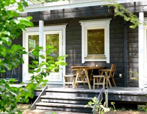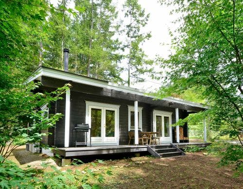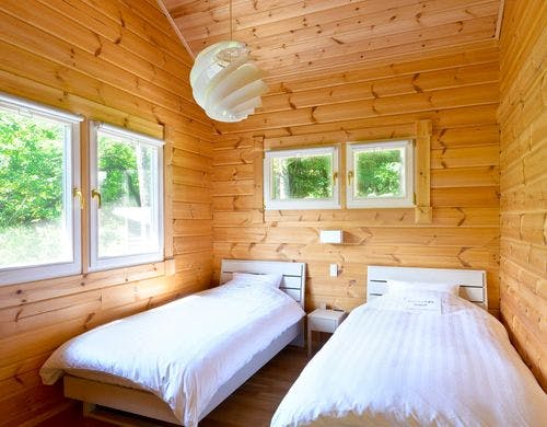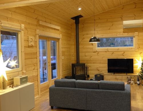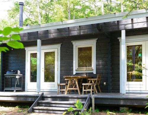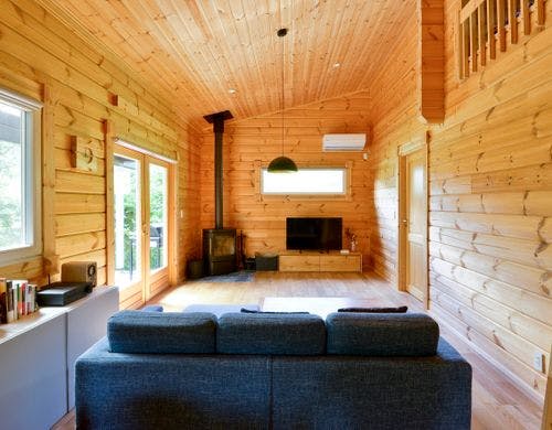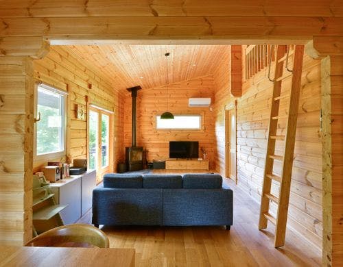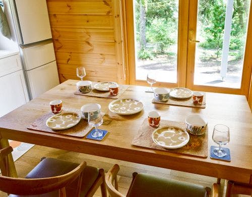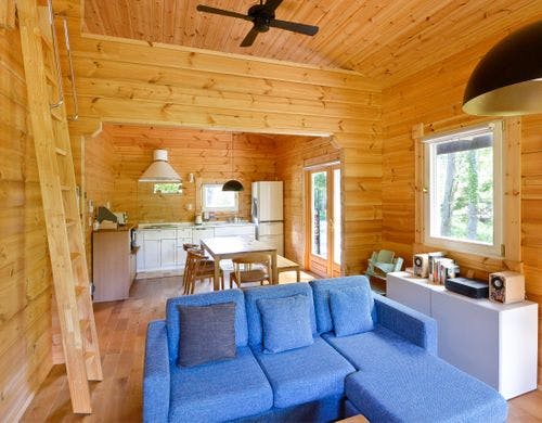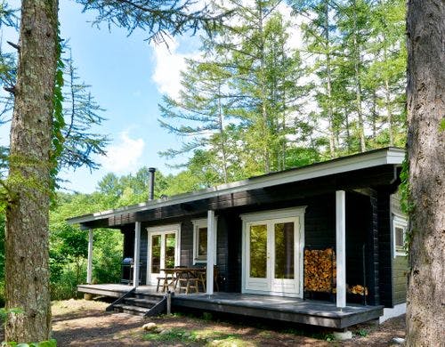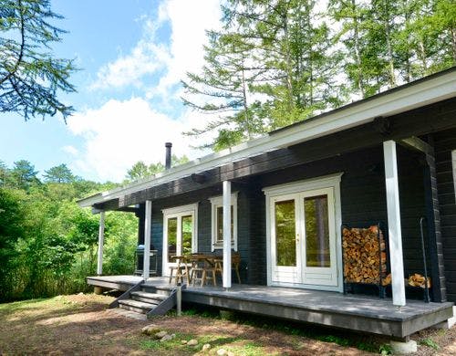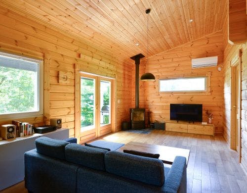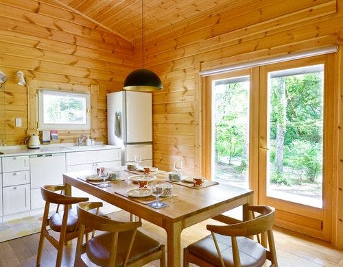 フィンランド製のモダンなプレミアムログハウス。八ヶ岳の森に囲まれ、無垢のパイン材の香りを感じながら、天井の高い広々とした空間で、家族や友人とゆったり過ごせるプライベートな一棟貸し。