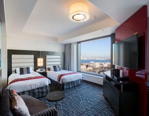 客室の特徴客室は、シティビューとベイビューの2種類があり、用途に合わせた選択が可能です。富士山が見える部屋もあるシティビューは、仕事に取組みやすいデスクが備えられ、出張にも最適です。ベイビューは、窓の外にランドマークタワーや観覧車などみなとみらいの風景が広がる部屋や、家族向けの設備が整った部屋が用意されています。