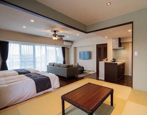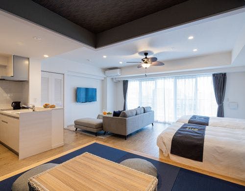 北谷美浜エリア。宿泊者専用の屋上インフィニティプール付、全ての客室が75以上のラクジュアリーなリゾートコンドミニアム。