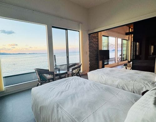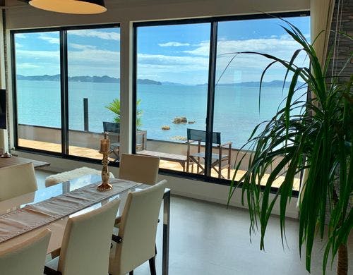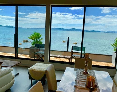 2019年、愛媛県松山市北部の海岸沿いに、一日一組限定のフロア貸し、広さ198平米、定員10名の民泊施設がオープン。目の前には見渡す限り美しい島々、青く澄み渡った空と海。素晴しいひと時をお届けします。