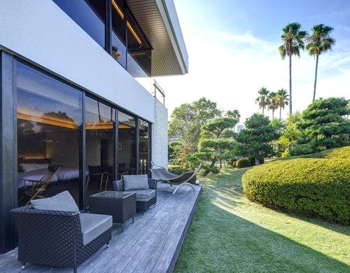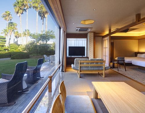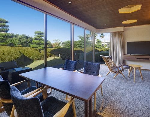 【2019年12月24日開業】グランヴィラは1組のゲストが専有可能な約360平米もの贅沢空間。ガーデンヴィラは丹下健三氏設計の別荘を4つの客室へとリデザイン。2022年10月グランピングガーデン&ヴィラが誕生。