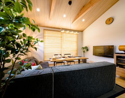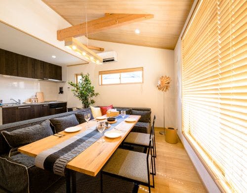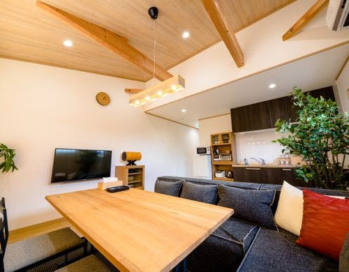 上質な和モダンインテリアと2階リビングから富士山の絶景を眺望できる新築ヴィラ。河口湖駅・湖畔まで徒歩6分の好アクセス。
