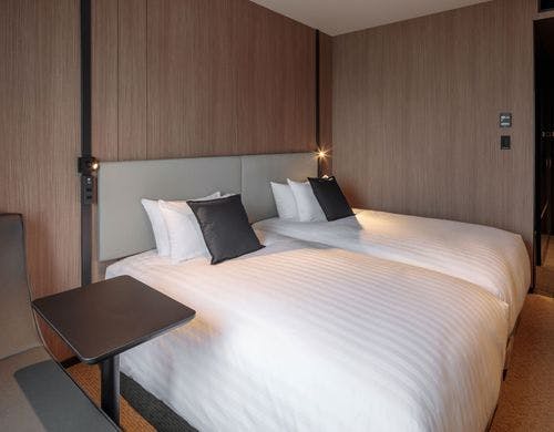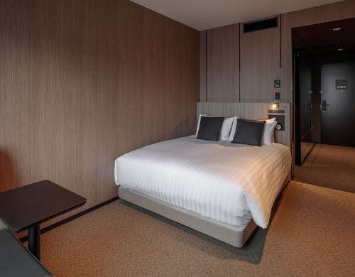 客室はナチュラルな色調で、テレビ、冷蔵庫、加湿機能付空気清浄機、湯沸かしポット、温水洗浄便座設備などが完備されています。シンプルで落ち着いた空間のスタンダードルーム、シモンズ社製のベッドを採用した最上階のプレミアムフロア、バリアフリー用ユニットバスを備えたアクセシブルルームなど多彩なニーズに応えた客室が用意されています。