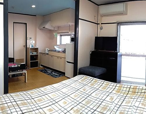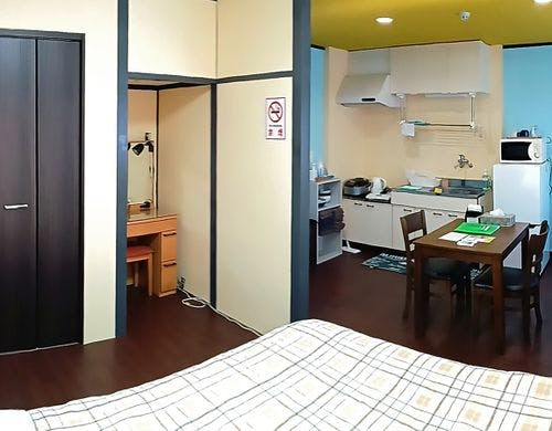 竹瓦温泉より徒歩1分、別府の繁華街にあるアパートメントタイプのホテル。リーズナブルなのに広々お部屋が魅力。