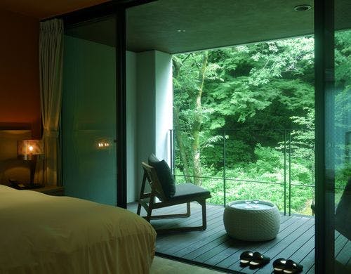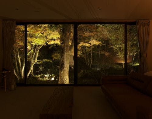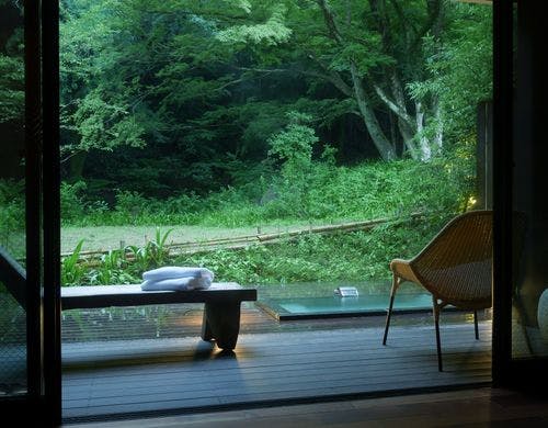 奥湯河原に佇むラグジュアリーな空間。新鮮な海の幸や、旬の採れたて地場の野菜による料理が自慢。