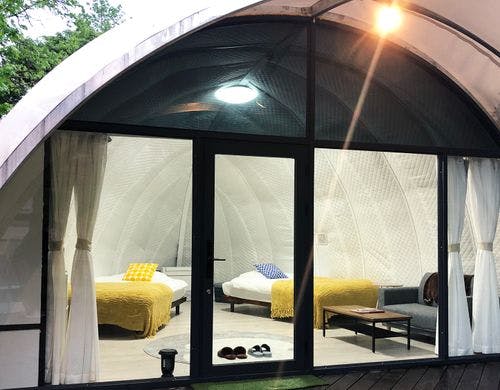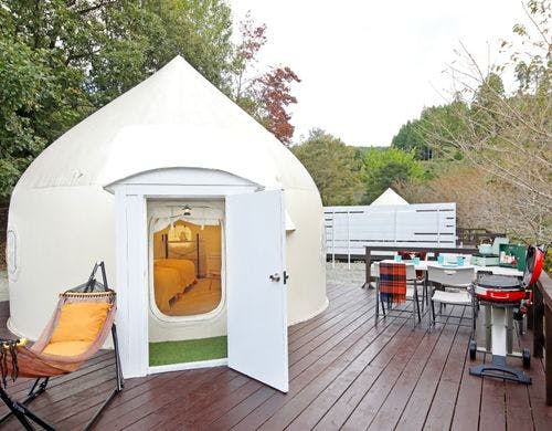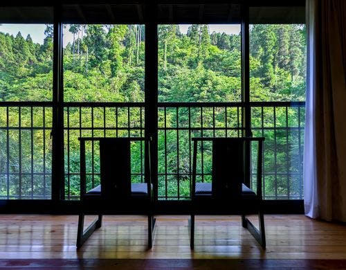 自然に囲まれた源泉かけ流し貸切温泉旅館と全4棟阿蘇グランピング施設。様々なタイプの貸切温泉と秋のアウトドアが人気