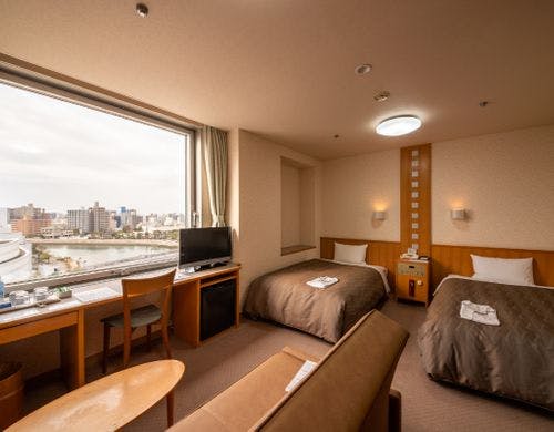 平和記念公園まで徒歩約5分。文化学園HBGホール隣接のホテルです。観光やコンサート、会議に便利。充実の平面駐車場(有料)