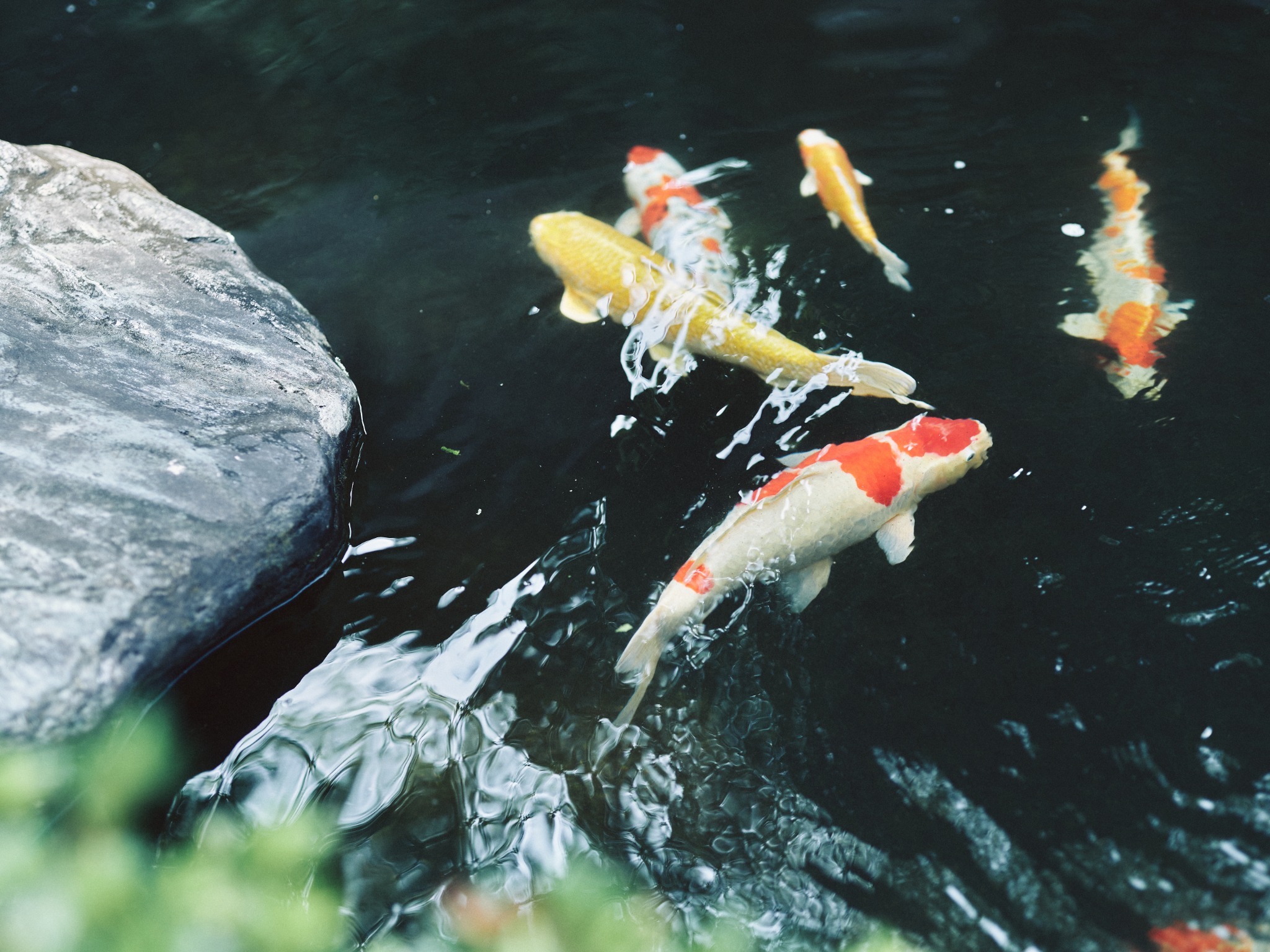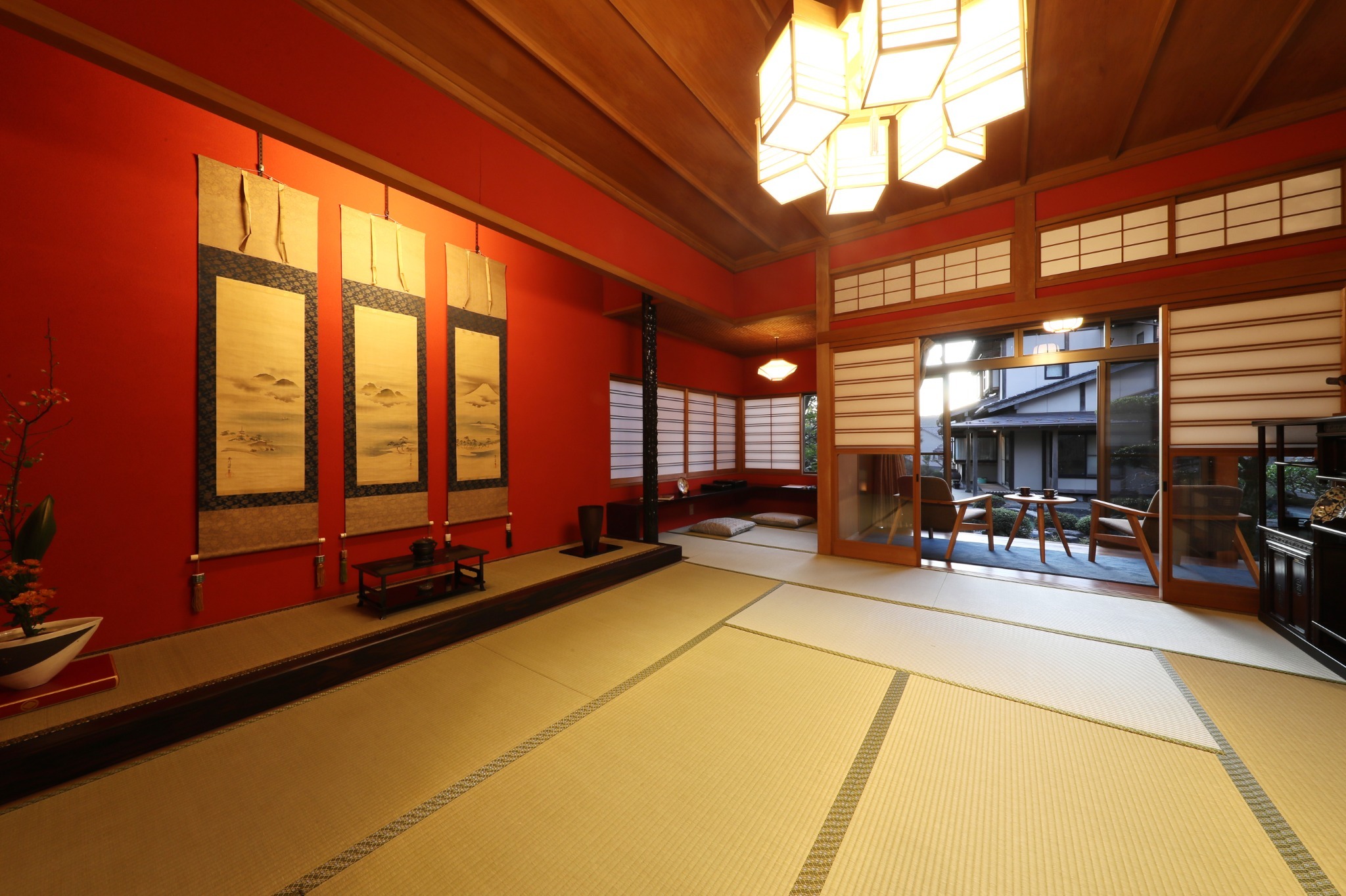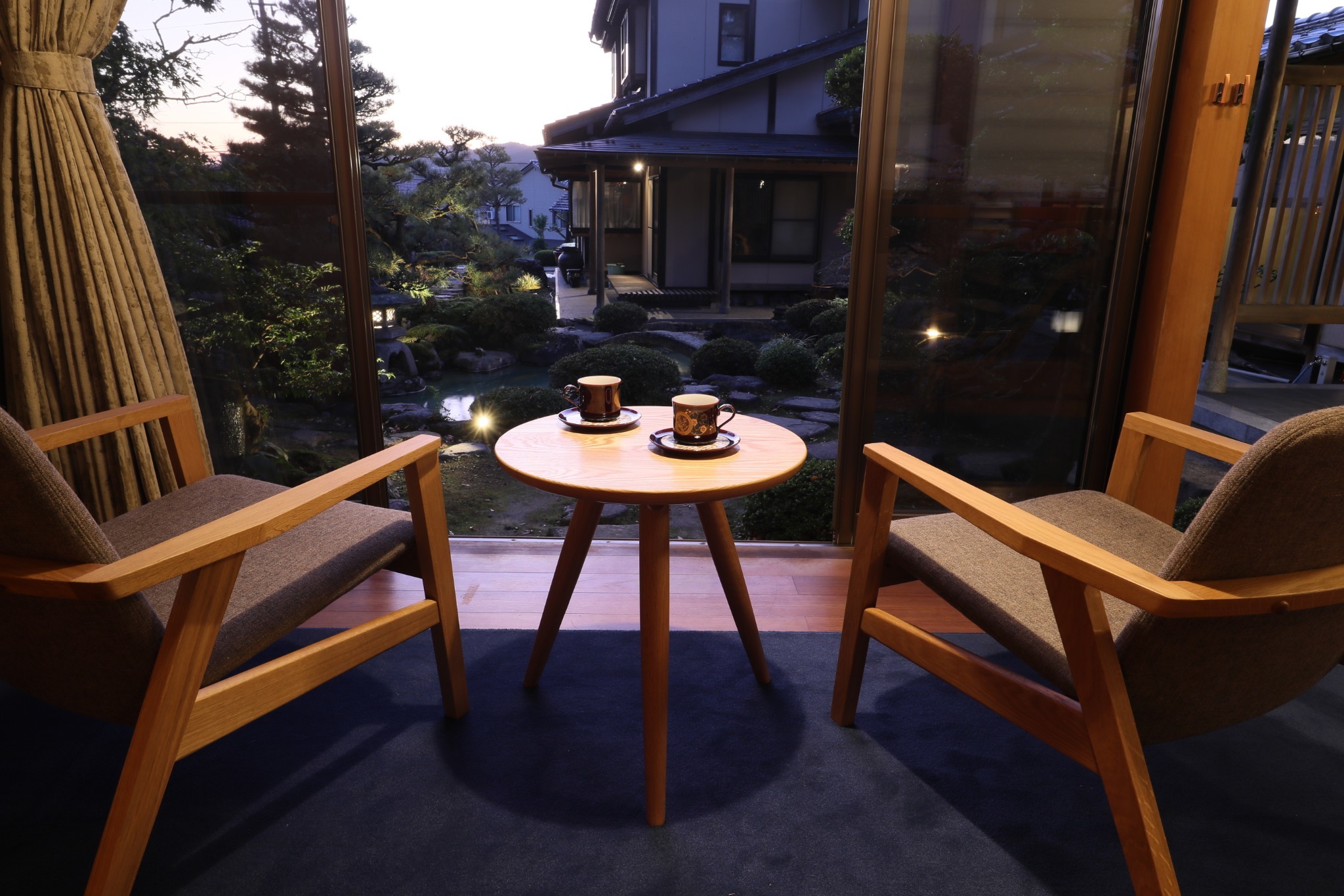 鯉が泳ぐ美しい日本庭園を眺めなら侘び寂びの世界観を