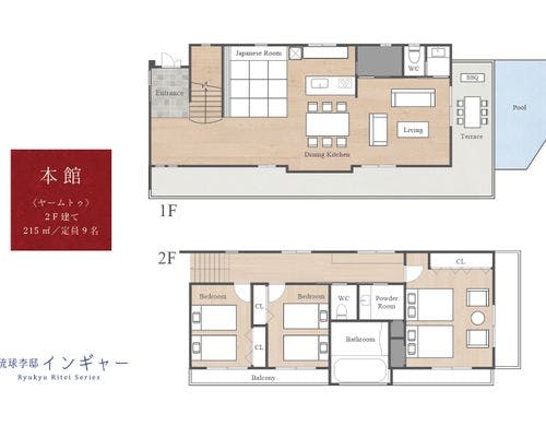 食事なし | 【本館】2F建てプール付きヴィラ(最大9名) / 215.80m2 禁煙 |
