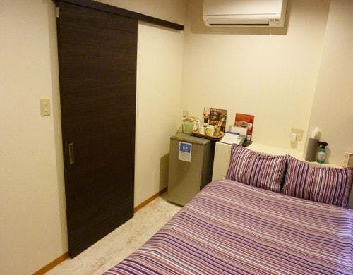 岡山市の中心地に立地。24時間監視システムとセルフチェックイン導入した素泊まり特化型の小さなホテル。女性限定のプラン有り