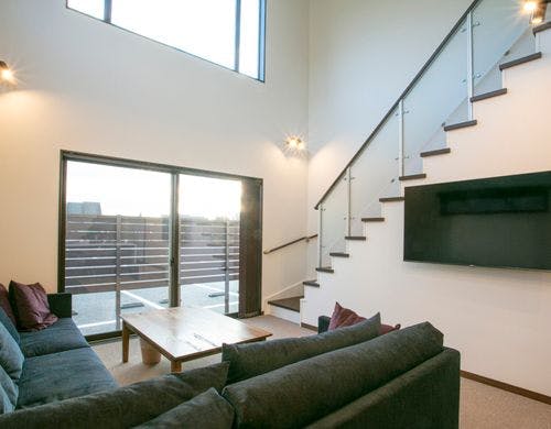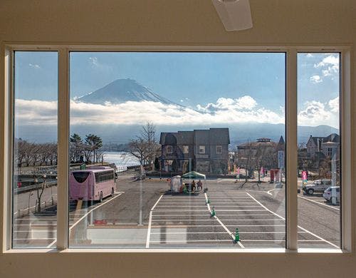 せつうは四季折々に変化する富士山の絶景が楽しめる貸別荘でございます。吹き抜けの大きく開かれた窓からは河口湖、富士山、広大な樹海の裾野を望む絶景が広がります。是非ともご滞在お楽しみくださいませ。