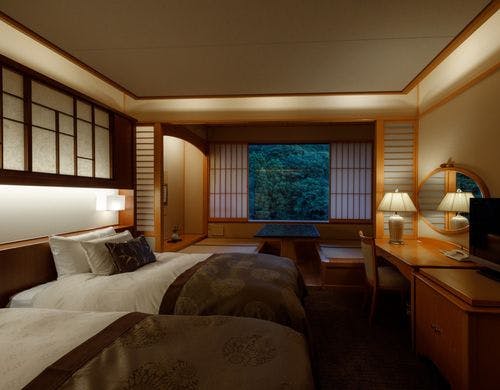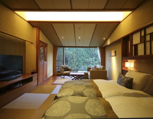 山間の自然に佇む明治14年創業の温泉旅館。長州藩主も湯治に訪れた長門湯本温泉で四季折々のお寛ぎ■星空観測無料