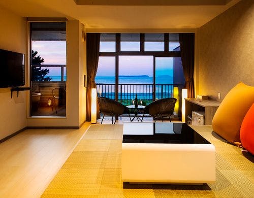 目の前は日本海!足湯×客室露天風呂×生ビール×貸切露天風呂が人気♪楽天アワード9年連続受賞&日本の宿アワード6年連続受賞