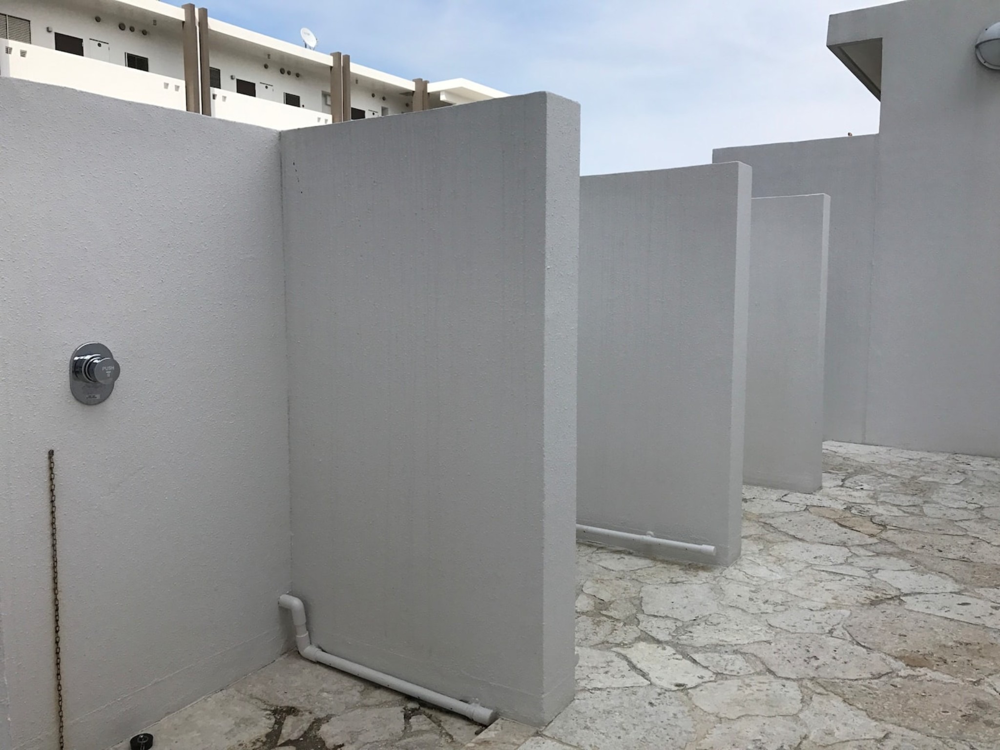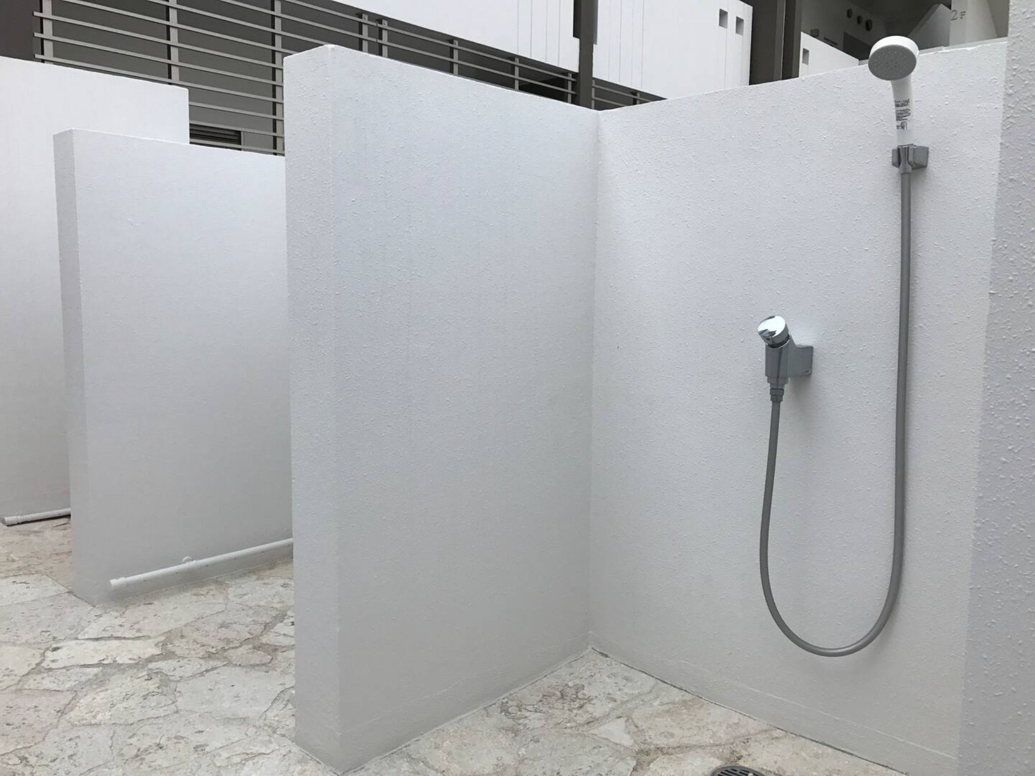 敷地内に屋外シャワー有り。潮や砂を洗い流してお部屋に戻れます。