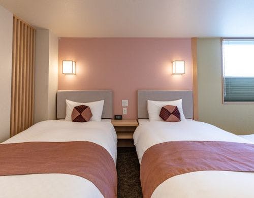 華やかな印象の芸妓をイメージした客室で島原の歴史を感じながら京都でのひと時をお過ごしください。Wifi完備☆