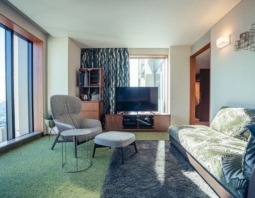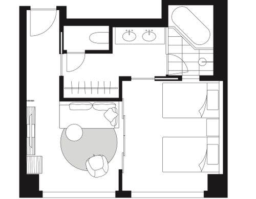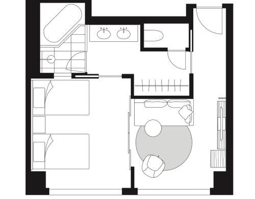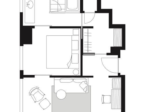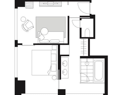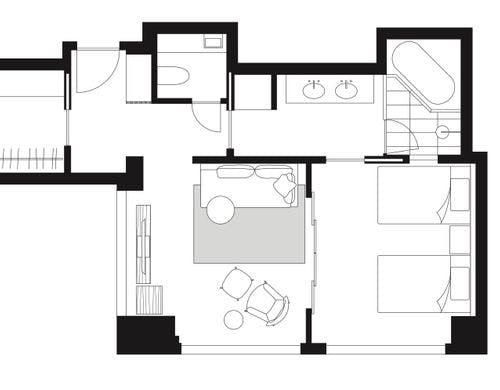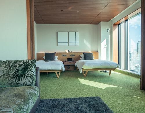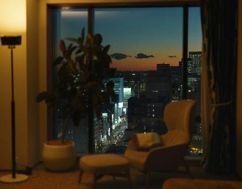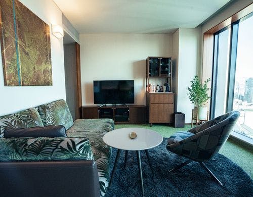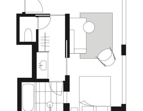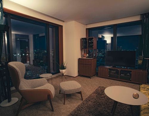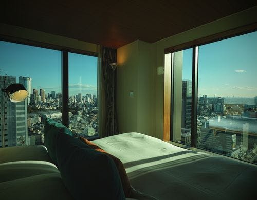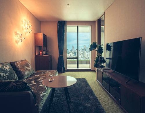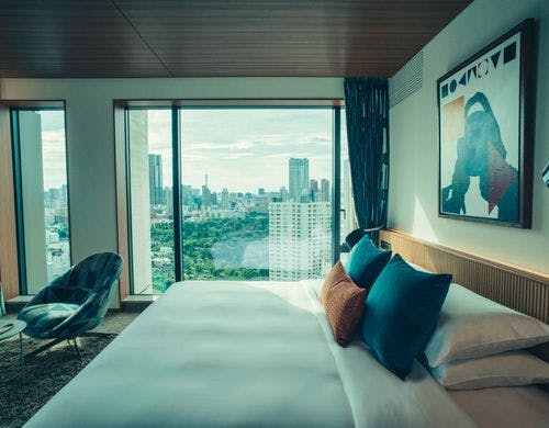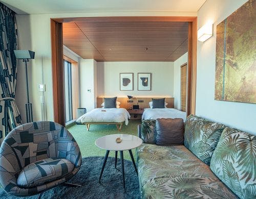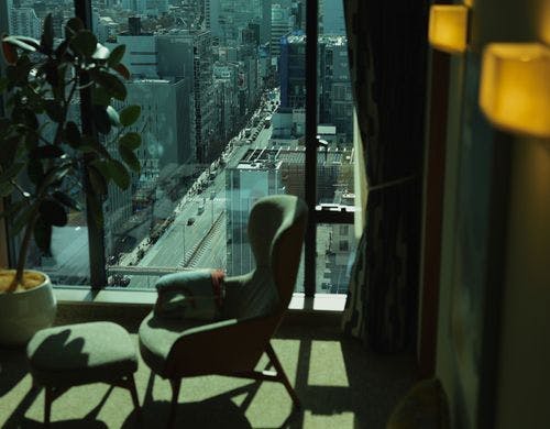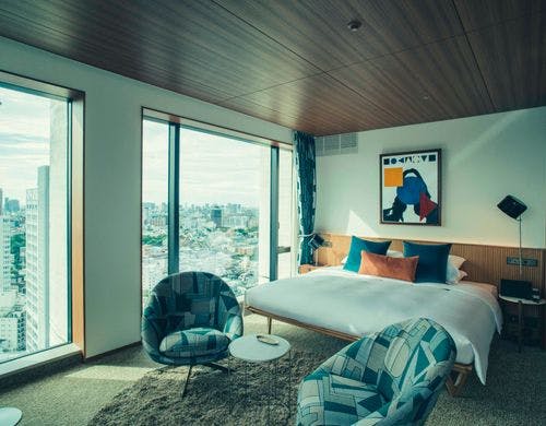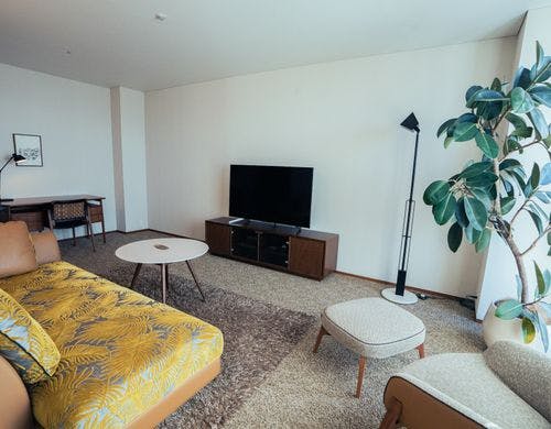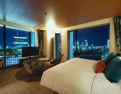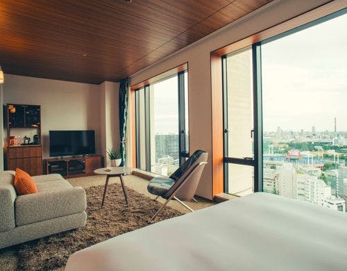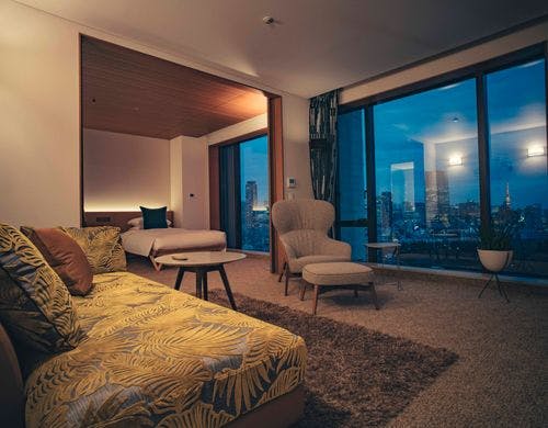 東京メトロ銀座線「外苑前」駅より徒歩3分。ミッドセンチュリーモダンなスタイルの客室。こだわりのインテリアと広々とした贅沢な空間で、まるで住まうような宿泊体験をお愉しみください。