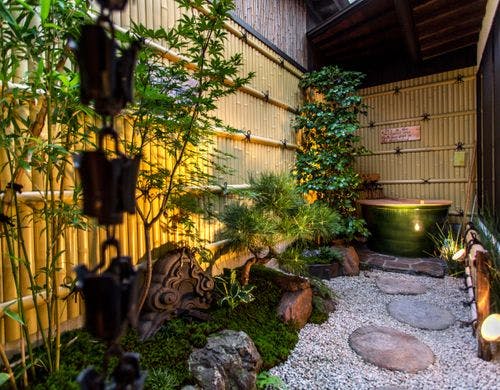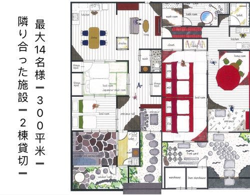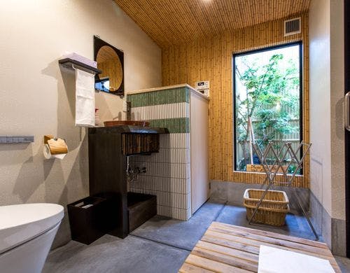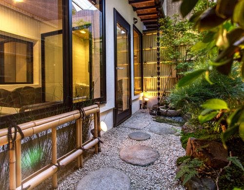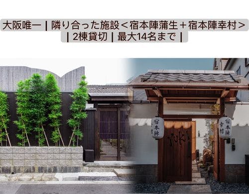 雅な「本陣」大阪にあり築100年以上の長屋古民家を宿泊施設としてリノベーション。高級感溢れる内装と、寝室から浴室と中庭を一望出来る開放的な造りは、誰もが満足して頂けることです。