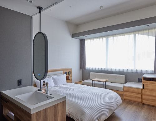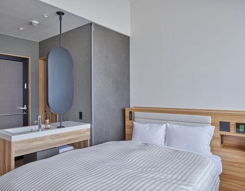 2022年リニューアル ◆シングル18平米◆無料駐車場で大型車OK◆小学以下添寝無料◆全室ダブルベッド・Wi-FI対応