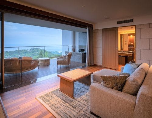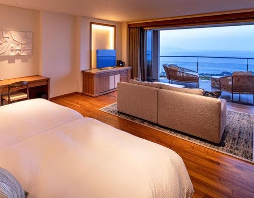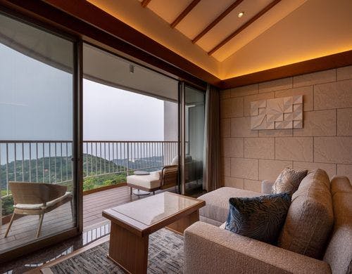 全客室に露天風呂を完備し、東伊豆の高台に位置する大人のスモールプレミアリゾート