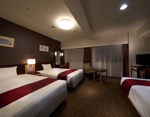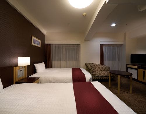 客室の特徴落ち着いたトーンのインテリアでまとめられた客室は、快適さと機能性を兼ね備えています。シモンズ社製のベッドや羽毛布団をシーツで包むデュベスタイルの寝具を採用し、質の高い睡眠環境を実現。Wi-Fiや空気清浄機、デスクなどの設備も充実し、シングルからトリプルまで多様な客室タイプを用意しています。