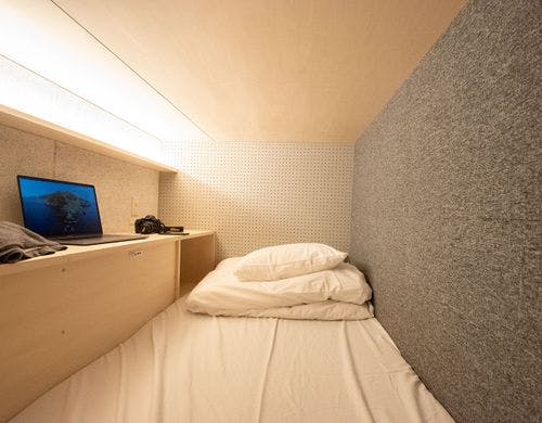 中長期の宿泊に最適!ランドリー、キッチン有。特許取得の広々カプセル