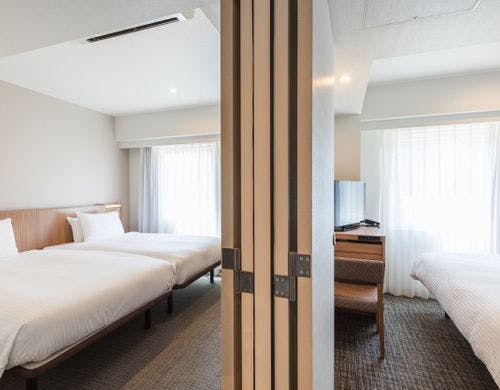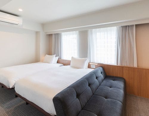 客室の特徴全室にシモンズ社製ベッドや加湿機能付き空気清浄機を完備しており、快適な滞在をサポートします。ダブルルームからユニバーサルダブルまで、多様なタイプの客室が揃い、それぞれに荷物を効率よく収納できるスペースが設けられています。