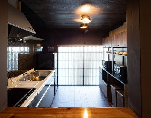 京都駅から一駅にある東寺駅。当施設は世界遺産真言宗総本山東寺のふもとに位置しています。「右近」「左近」と名付けた2つの部屋がありますので、人数やお好みでお選びください。