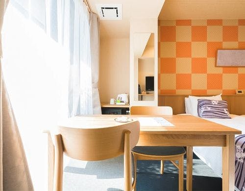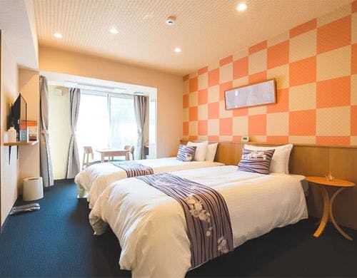 神宮丸太町駅より徒歩にて約5分。2020年2月の新築ホテル。館内には和の装飾が施されていて、和モダンでオシャレな内装です