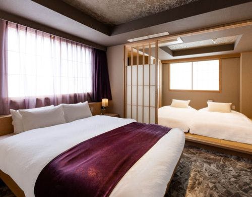 プライベート空間広がる町家棟の他にも洋室、和室、スイートルームなど多種多様な客室で構成。京都一の繁華街まで徒歩圏内!