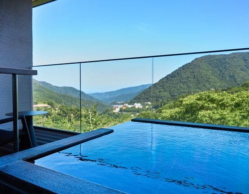 全70室に露天風呂を備えた癒しのお宿。広々とした展望露天風呂、快適性を兼ね備えた客室、旬の食材を使ったお食事をご堪能ください。