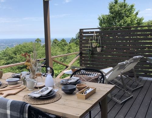 空に近い森のアウトドアリゾート。絶景と焚き火を楽しむ贅沢な時間。自然と快適が整う空間で、豪華BBQや季節の味覚を。