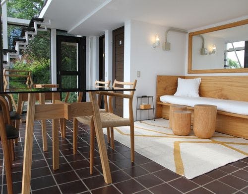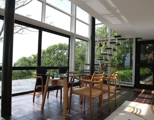 東京から一番近い秘境・伊豆半島の最南端・南伊豆の太平洋に面した崖の上にある別荘。1960年代に物理学者とフランス文学者のご夫婦が構想した、モダニズム建築。今では建築物を建てられない国立公園の自然保護区にある非日常世界。