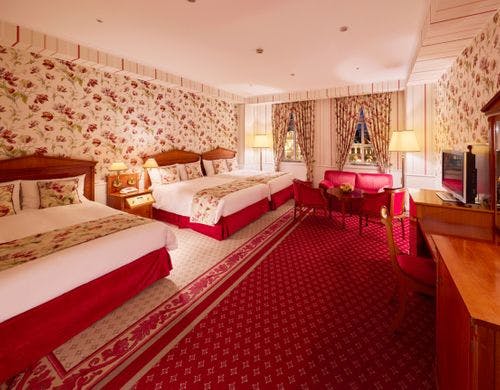 専用駐車場やベビーベッドなどの各種備品貸出が充実しています。開園前の先行入場、翌日パスポート付与など、宿泊者向けの特典も多数用意され、ホテルヨーロッパラウンジで開催されるクラシックの演奏会も観賞ができます。花束や誕生日ケーキを手配するサービスもあり、記念日のお祝いにも最適です。