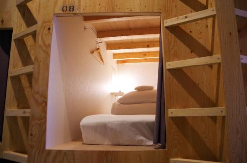 高岡駅前の中心市街地にある小さな宿。ポッド型ベッドが特徴で、快適な滞在を!