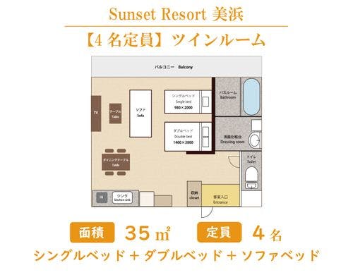 2026年1月~2026年11月の中で、Sunset Resort 美浜の最安値は10,480円(1月)です。