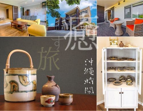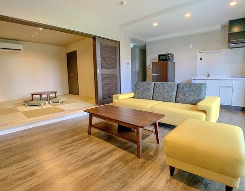 2フロアの全4室。最大定員8名なので家族や友達の宿泊にも最適です。古宇利島まで車で約6分。