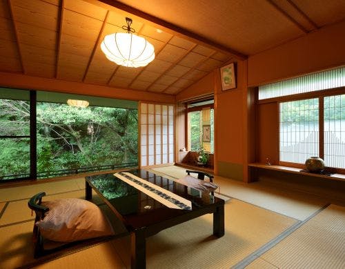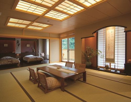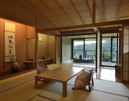 全室に極上の湯質の露天風呂付。伊豆奥下田の自然に抱かれ、至福のときをお過ごし下さい。