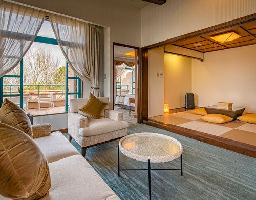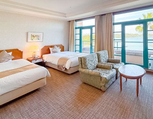 青い海と異国情緒あふれる館内が映える!オーシャンビューのインフィニティ温泉と地中海グルメを満喫するフォトジェニック旅。
