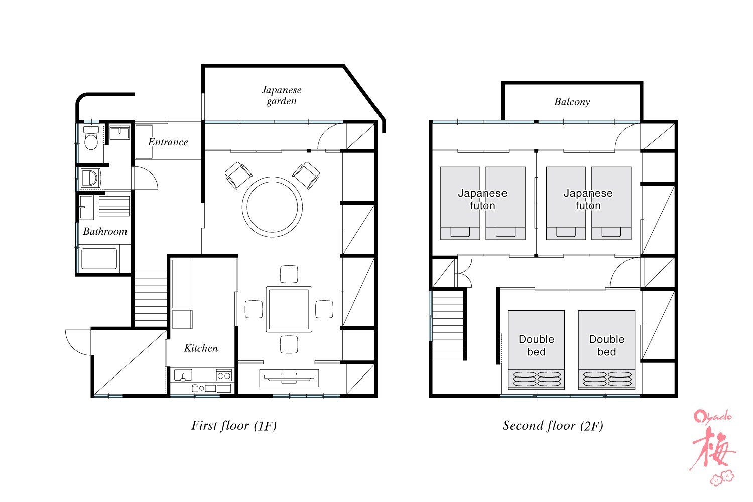 お宿には枯山水の日本庭園があり、そこにはしだれ梅が植えられています。