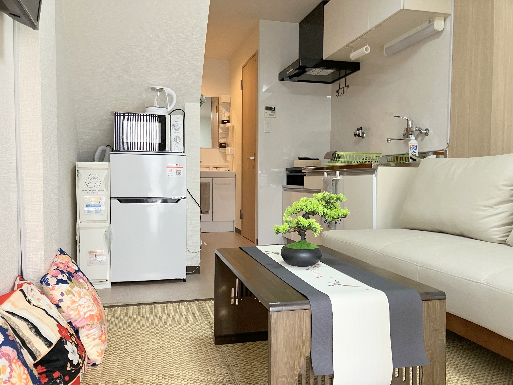 お部屋は綺麗に清掃して、お布団は日干しして、シーツは洗濯アイロン掛けしております。