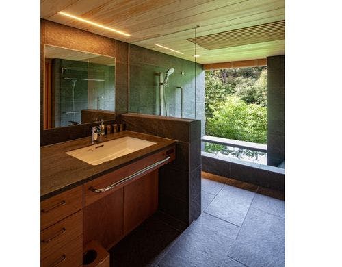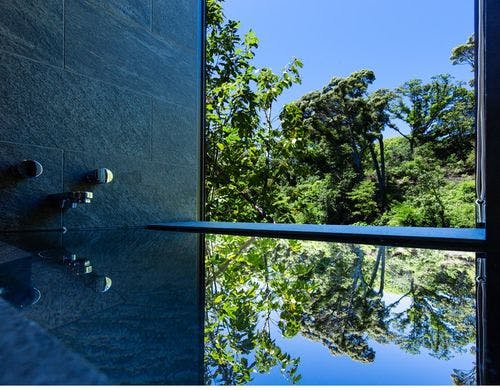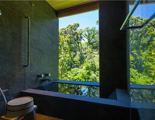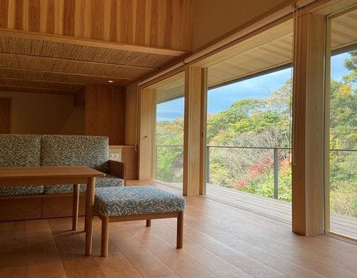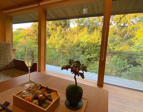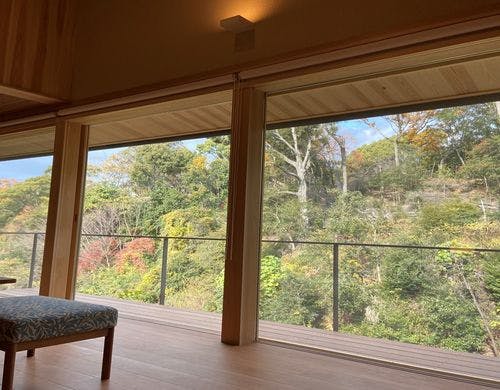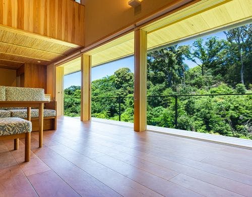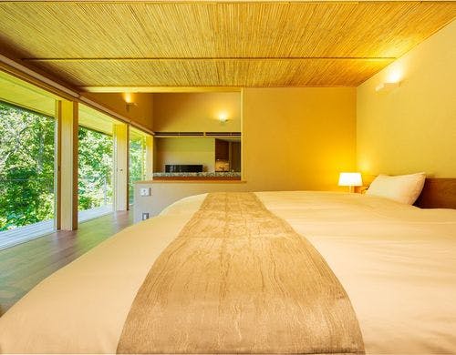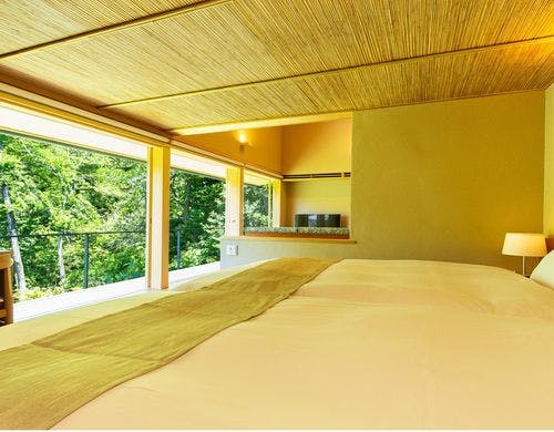 お部屋に一歩足を踏み入れると、市内とは思えない雄大な国有林の景色が広がります。こだわり抜かれた建築設計と職人の技で作り上げられた至極の空間をお楽しみください。