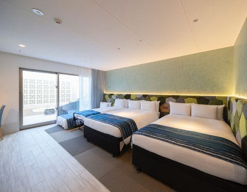 まるで海外のリゾート気分♪水着で入る屋外温泉&屋外プールとオリオンビール・カクテルなど無料飲み放題が評判のホテル。