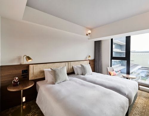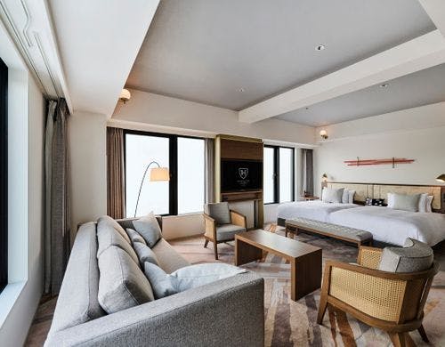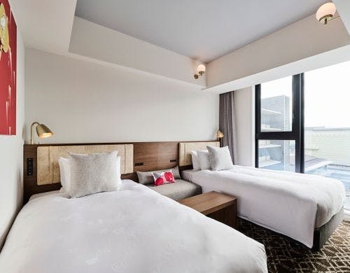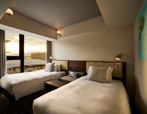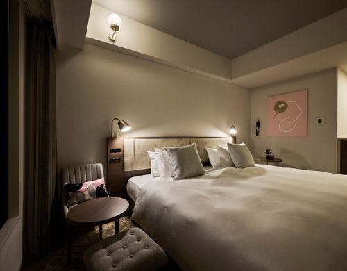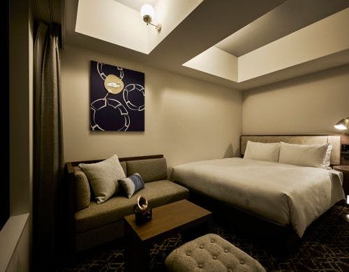 JR・地下鉄「二条」駅から徒歩約2分。ご宿泊ゲストが無料でご利用できるラウンジやスタイリッシュなデザインの大浴場も。