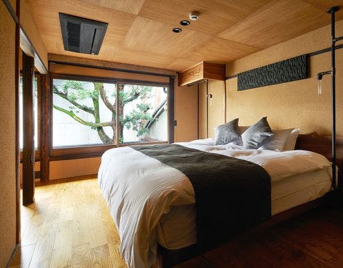 京都の伝統的な趣とモダンが融合した京町家。町家建築の美しさを残したラグジュアリーな空間です。贅沢で静かなひとときをお過ごしください。