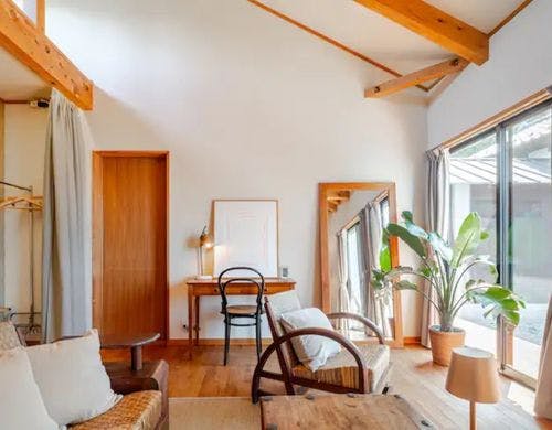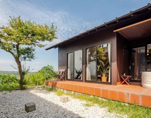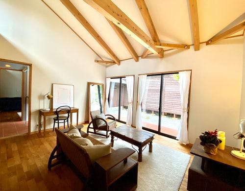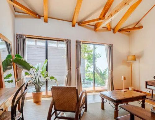 鎌倉稲村ガ崎の山の上にある、すばらしい景色のリゾート住宅です。お部屋からは、海と江ノ島、天気のいい日は富士山が見えます。自宅の離れを1日1組限定のバケーションレンタル(民泊)としてお貸ししています。