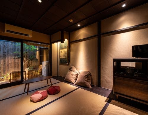 清水寺、高台寺エリア、庭付きの町家、火袋と呼ばれる高い天井を生かした浴室が見どころ。