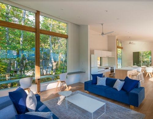 拘りぬいた最新のキッチン設備と、屋根付きバルコニー付の広々としたリビングがある3.5LDK貸別荘