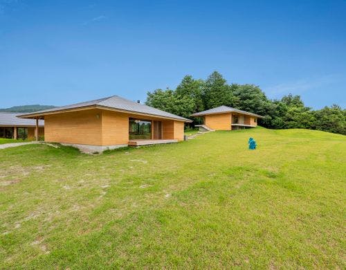 スルーザグリーンで過ごせる語らいとくつろぎ、食楽のアコモデーション。目の前にはグリーン、裏には里山を望む抜群の眺望。山からも海からも心地よい風が吹き抜けるロケーションです。